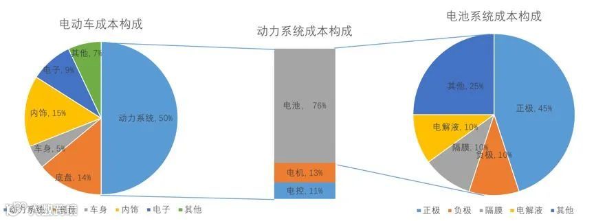 电池研发领域也是如此。整体而言,动力电池占据电动车大部分生产成本。中国汽车动力电池产业创新联盟副秘书长王子冬曾言,动力电池目前占据主机厂采购成本的30%左右。电池在整车成本构成中的比例更高——
