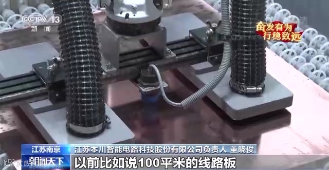 江苏本川智能电路科技股份有限公司负责人 董晓俊:传统工厂的设备,报废率估计要到0.6%,现在是低于0.1%。以前比如说100平方米的线路板,我们交期可能要到两周的