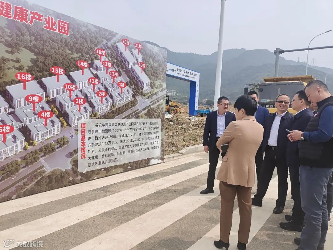 3月21日上午,福安市委副书记、党组书记、市长黄其山,福安市委常委、常务副市长黄凌,福安副市长连坚,市政府办公室及财政局、商务局等市局局长主要领导一行,莅临中南高科越利·福安智慧健康产业园,察看项目进展并指导工作。中南高科福州宁德片区总经理黄振涌陪同接待并作项目介绍和工作汇报。