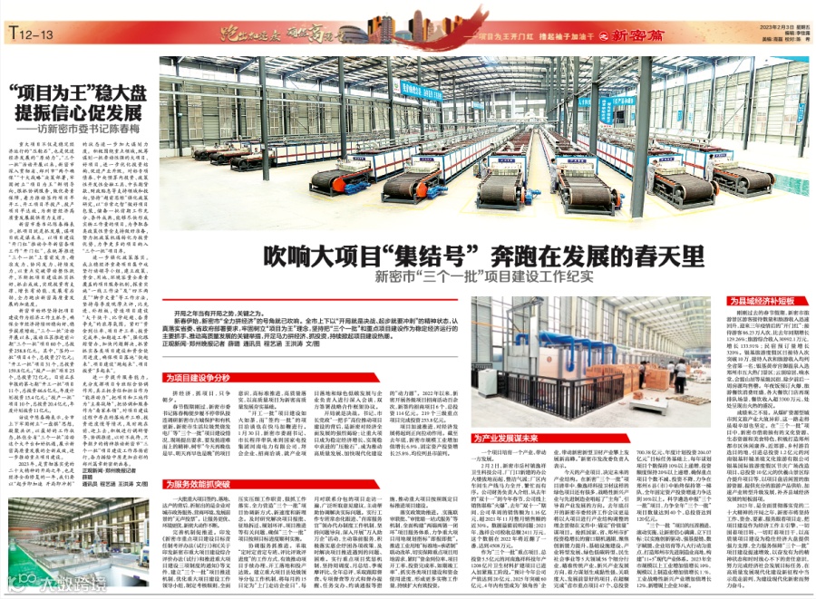 重大项目不仅是稳定经济运行的“压舱石”,也是促进经济发展的“原动力”。“三个一批”活动开展以来,新密市深入贯彻省、郑州市“两个确保”“十大战略”决策部署,牢固树立“项目为王”鲜明导向,狠抓协调服务,做优要素保障,着力推动签约项目早开工、开工项目早投产、投产项目早达效,为新密经济高质量发展提供有力支撑。