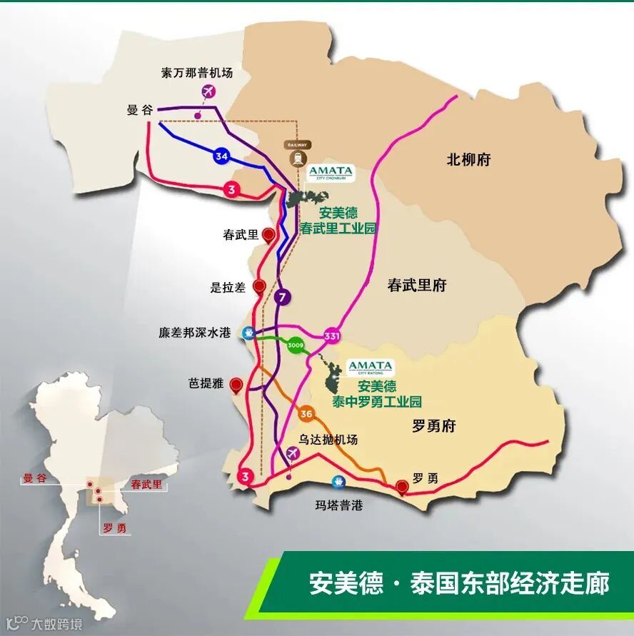 ▲安美德春武里和罗勇工业园均位于泰国“东部经济走廊”核心区域