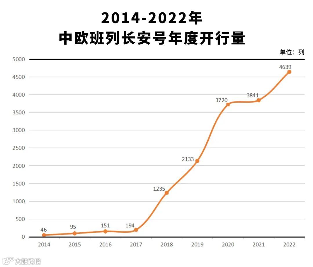 根据中欧班列运输协调委员会统计资料,2022年西安中欧班列长安号开行量达到4639列,成为全国中欧班列开行城市中首个年度开行量突破4600列的城市,运送运输货物411.7万吨,同比增长20.8%,累计开行16054列。开行数量、货运量、重箱率三项核心指标位居全国第一。