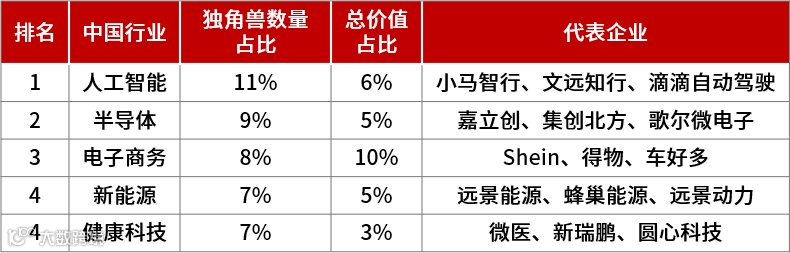 独角兽企业来自哪些行业?