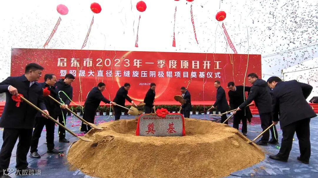 2月11日上午,启东市2023年一季度项目开工暨昭晟大直径无缝旋压阴极辊项目奠基仪式在启东高新技术产业开发区举行。