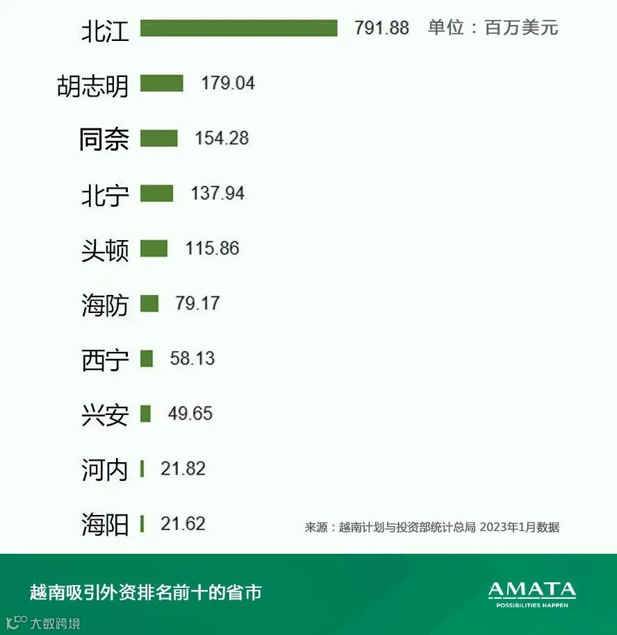 该省数据显示,全省已吸引 1400 多个 FDI 项目进驻工业园区,注册资本总额超过 286 亿美元,落实金额近 220 亿美元。2023 年 1 月,四个新的 FDI 项目总额为 640 万美元,另外六个项目的投资额为 1.715 亿美元。