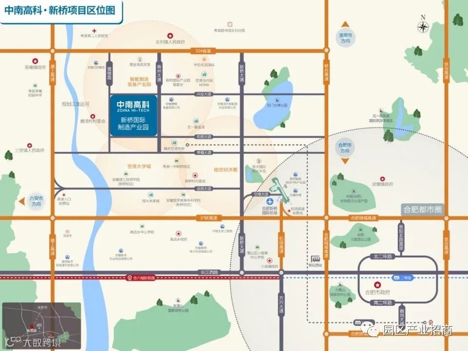 项目位于合肥城市副中心,合肥空港经济示范区核心区,是省级重点开发区并列入国家级开发区目录,充分享受省会合肥和新桥机场的辐射带动。