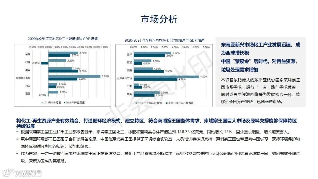 本项目服务于泛亚地区化工类、再生资源、汽车制造、工农业机械制造以及绿色环保产业的投资开发、生产加工及进出口,包括:石油化工业、造纸业、纺织印染、电镀产业、生物制药、再生资源(如:轮胎、钢铁、电瓶、塑料、光盘、芯片、电子电器)等企业。