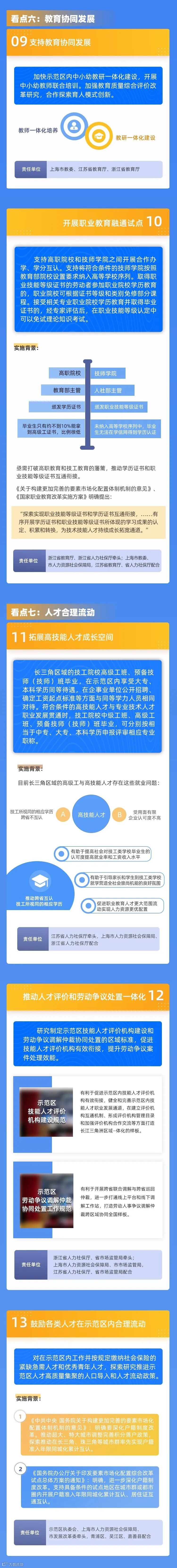 六是教育协同发展。政策第九条、第十条对加快示范区内中小幼教研一体化建设、开展职业教育融通试点等予以明确,将为示范区跨省域合作探索育人模式创新、推动职业教育改革先行先试等提供政策依据。