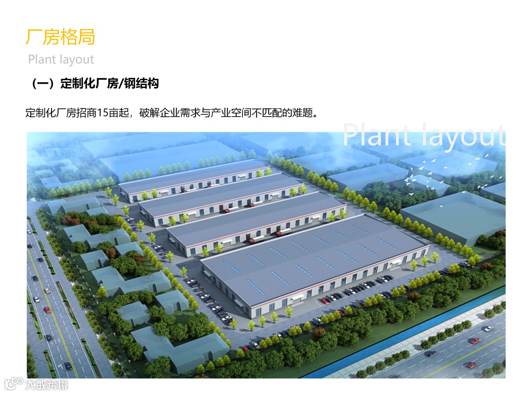【产品类型】:1、稀缺单一层钢构厂房(1500-6000㎡),一企一栋送院子