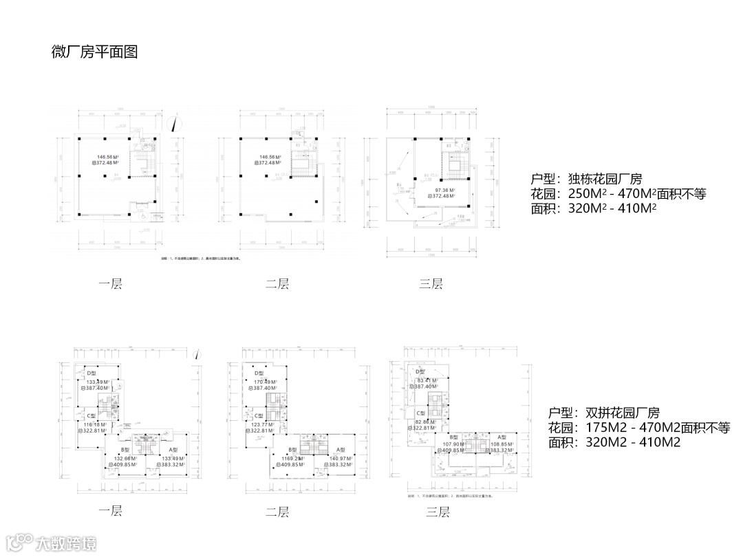 4、花园独栋研发办公楼 395㎡小独栋、1120㎡小联排、1503㎡大联排