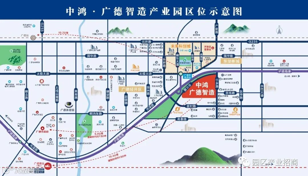 【交通】:华鸿产发.广德智能制造园项目位于广德经济开发区主园区,距广德市区9公里,距离广德南站10公里,距离G50沪渝高速广德东出口仅1.2公里,交通优势突出,高效便捷,阻力企业构建快速物流网。