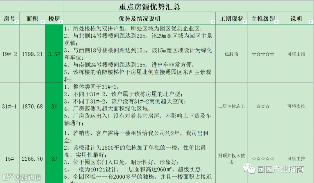 独栋厂房面积区间为:1400㎡-8300㎡
