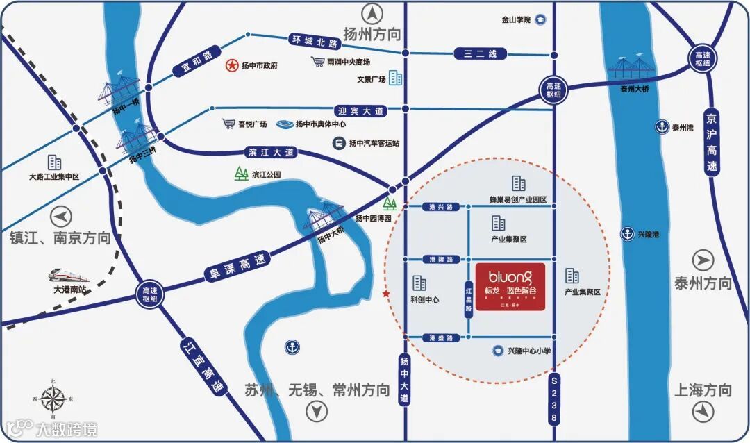 扬中市标龙产城实业发展有限公司,标龙·蓝色智谷产业园位于扬中市经济开发区红星路和港隆路交汇处,项目规划260亩,其中一期规划165亩,总投资12亿,总建筑面积约20万方。