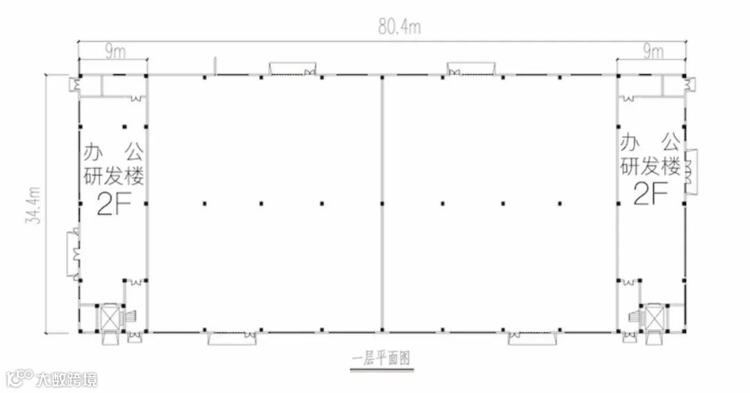层高:钢结构层高12m,办公研发楼1F层高8m,2F层高4m