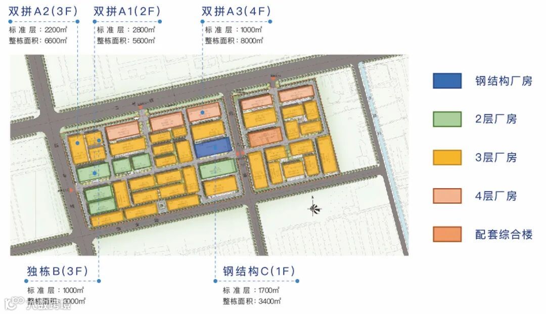 面积段:钢结构,单层建筑面积约800㎡,整栋建筑面积约4000㎡