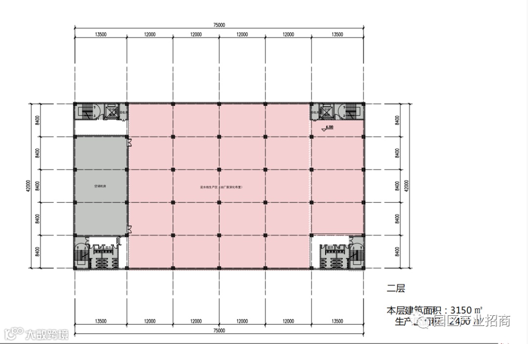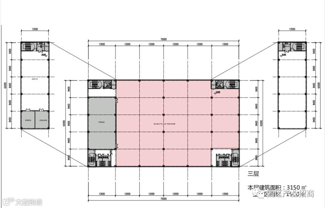 3层框架结构,单层约3150㎡(柱距8.2 m*12m)和约2500㎡(10.5m*9m),单层不可分租。一楼实心地面,楼上荷载500KG/平米。