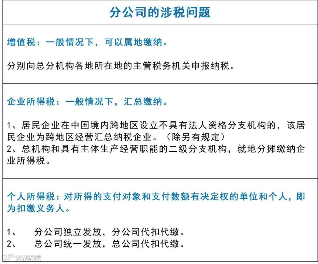 看完了子公司和分公司的定义后,我们再继续说说这两种不同形式的涉税问题。先说结论:子公司比分公司的税务处理简单!