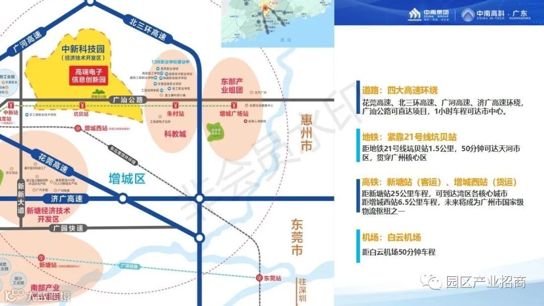 距中新科技园30km左右的增城新塘片区已有超视界、维信诺等成熟制造业企业聚集