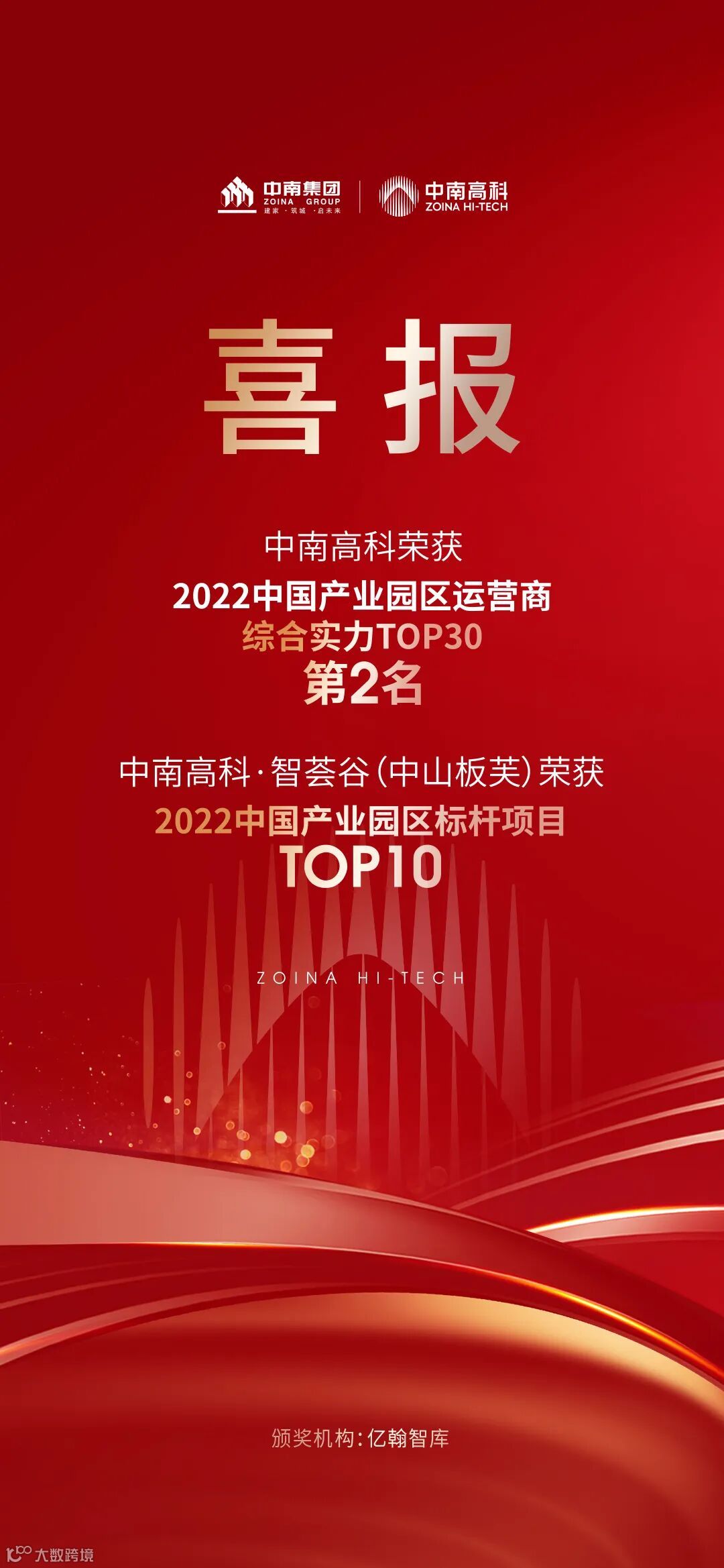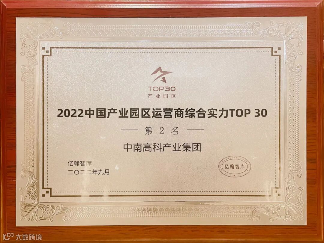 中南高科凭借稳健的经营业绩和专业的服务能力,再度荣膺“2022中国产业园区运营商综合实力TOP30”,且蝉联第二位。中南高科第三代园区的标杆之作:中南高科·智荟谷(中山板芙)项目则荣获“2022中国产业园区标杆项目TOP10”之荣誉,展示出行业与客户对高科实力的持续认可。