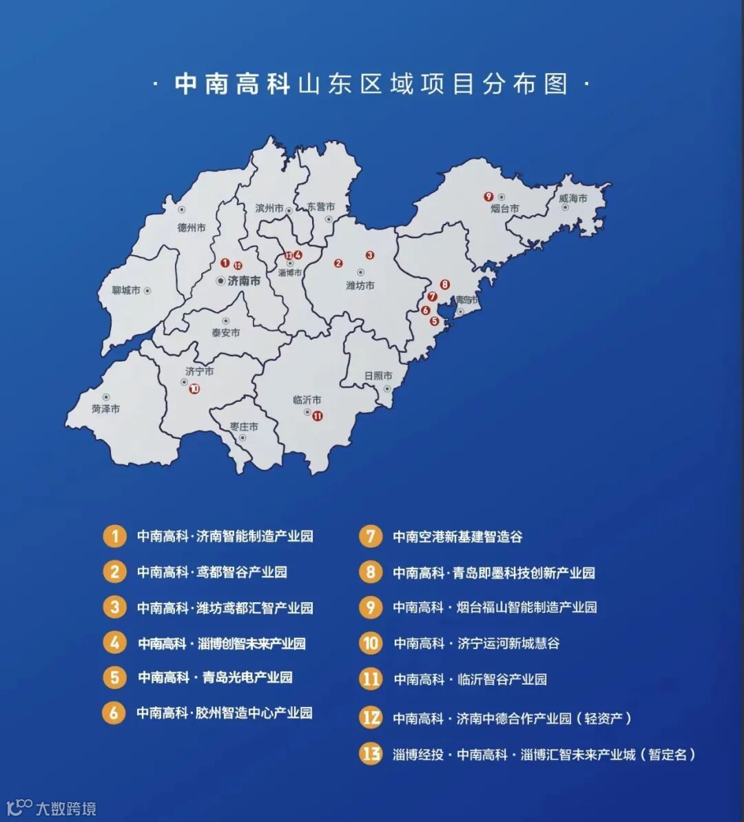 2017年中南高科落子山东,目前已在济南、青岛、烟台、潍坊、淄博、临沂、济宁等7大城市布局13个园区,累计招引企业近600家,其中高新技术、“专精特新”等优质企业近200家,包括美国康明斯发动机、日本大隈机械、杭叉集团、山东省海洋化工科学研究院、长春一汽四环等国内外知名企业落户中南高科山东各地产业园区。