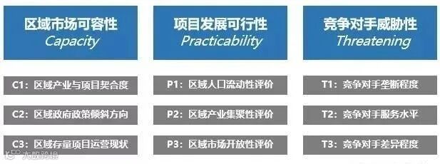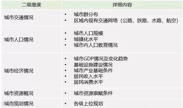 利用格物进化产业运营机构的3-12Plus预选城市评价模型对目标城市进行下一步筛选评比。可以从三个大维度对目标城市进行下一步判断,分别是:区域市场可容性,区域对产业园的可接受力分析;客户发展可行性,区域内园区的发展可行性分析;竞争对手威胁性,区域内园区对新进入挑战分析。每个评价维度又可以从四个小项指标进行评价,暂时不考虑加权重,仅仅量化指标,做最终决策参考。详见下表: