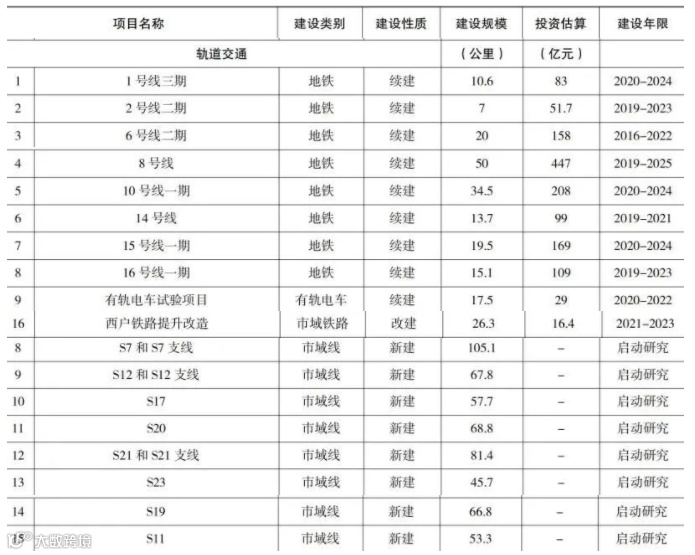 1条市域(郊)铁路,即西户铁路,目标是年内开工;