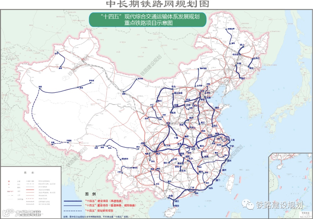 1、普速铁路。建设柳州至广州、瑞金至梅州、温州经武夷山至吉安、定西经平凉至庆阳、太子城至锡林浩特、仙桃经洪湖至监利、太原至和顺、大理至攀枝花、乌北至准东增建二线等普速铁路,协调推进首都地区货运东、北环线铁路建设。推进富裕至加格达奇、南京至芜湖、鸦鹊岭至宜昌、天津至蓟县、汪清至图们、中卫至平凉等铁路扩能改造。 2、高速铁路。建设北京经雄安新区至商丘、包头至银川、襄阳至常德、天津至新沂、西安至重庆、西安至十堰、长沙至赣州、雄安新区至忻州、太原至绥德、延安经榆林至鄂尔多斯、长春经辽源至通化、敦化至牡丹江、哈尔滨经绥化至铁力、上海经乍浦至杭州、宁波经台州经温州至福州、焦作经洛阳至平顶山、阜阳至黄冈、益阳至娄底、铜仁至吉首、邵阳至永州、南昌至九江、湛江至海安等高速铁路。 |