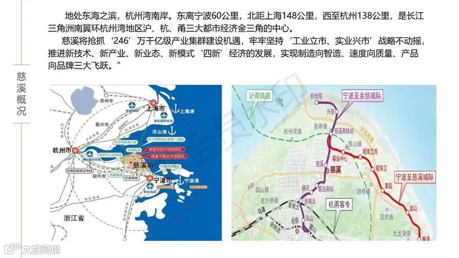 【交通区位】∶地处东海之滨,杭州湾南岸。东离宁波60公里,北距上海148公里,西至杭州138公里。距离余姚站22公里,宁波站52公里,宁波栎社国际机场60公里。沪杭甬高速、沈海高速,329国道,胜埠公路。