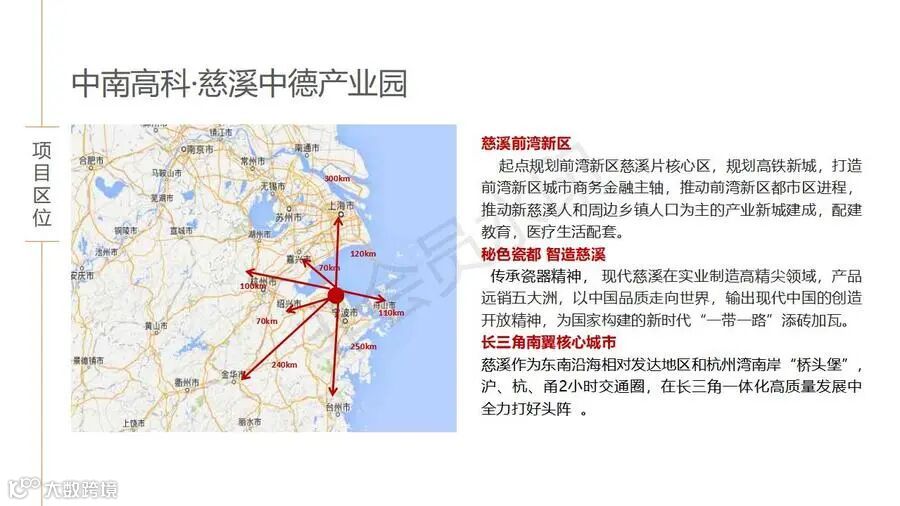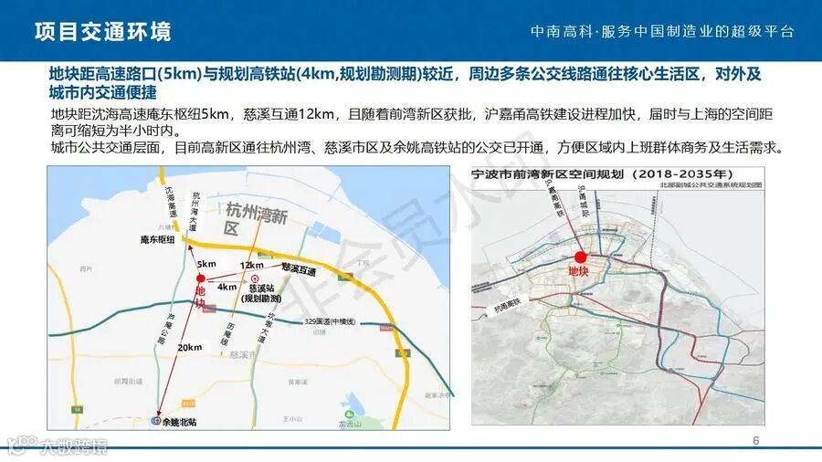 地块距沈海高速庵东枢纽5km,慈溪互通12km,且随着前湾新区获批,沪嘉甬高铁建设进程加快,届时与上海的空间距离可缩短为半小时内。