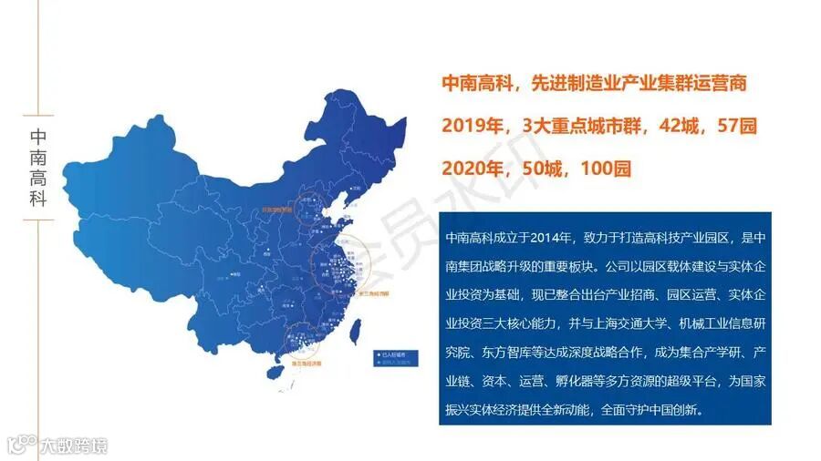 3、中南高科:以新兴产业园区发展为基础,以产业资源导入与产业发展服务为核心竞争力,全力赋能优秀企业与企业家,致力于打造集产学研、产业链、孵化、运营服务于—体的产融平台;