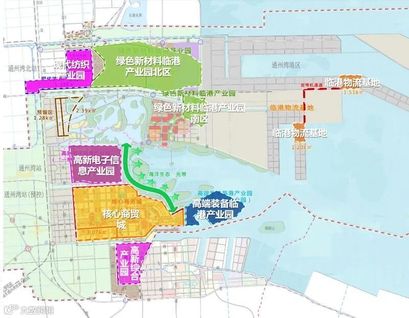 产业园西临扬启高速、G328国道和洋吕铁路,南接通州湾核心商贸城,位于通州湾核心区域。
