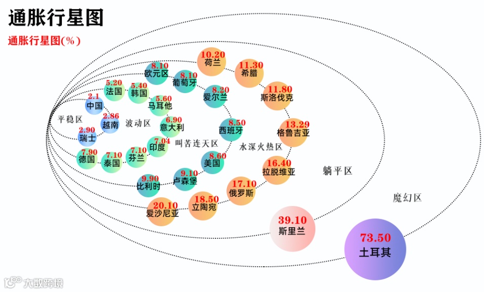 今年以来,本轮通胀已经蔓延全球,多国通胀率高于20%,出现了严重通货膨胀,全球通胀创历史新高。