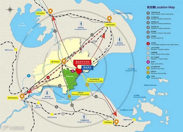 浙江海盐经济开发区位于杭州湾跨海大桥北堍,处于上海、杭州、宁波、苏州一小时交通圈内。区境内岸线、滩涂资源丰富,属浙江省海洋经济示范区范围。