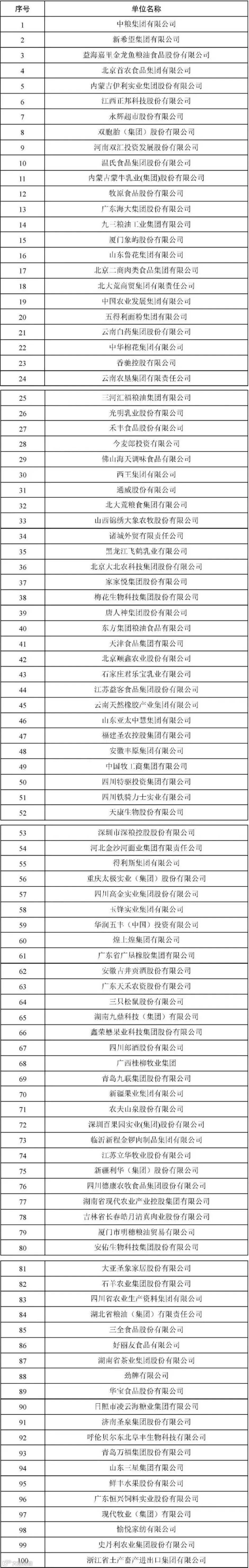 2021年度农业产业化头部企业100家