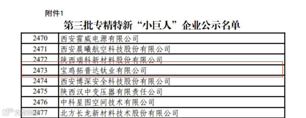 拓普达钛业董事长王勇锦提到:公司自成立以来一直专注细分市场,聚焦主业,在钛领域技术上不断提升创新能力,增强核心竞争力的同时,在经营管理、产品质量、科研创新发展方面发挥积极的示范带动作用;公司于2021年获得第三批国家专精特新“小巨人”企业资质认定。