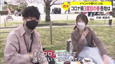 一对正在樱花树下约会的情侣这样说: