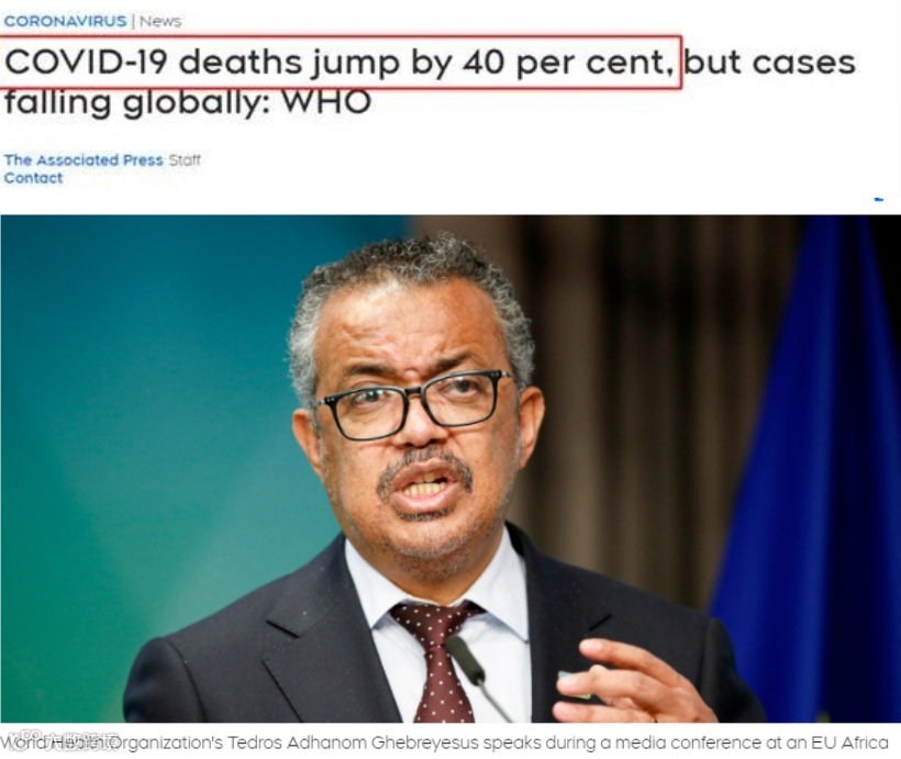 世界卫生组织在最近的报告中指出,过去1周,全球新增确诊约1000万例、超过4.5万人死亡!新冠死亡比前一周增加了40%!