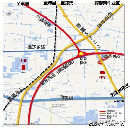 【省道】省道S322,北至郑集,南达徐州市区;疏港公路北至京杭运河顺堤河作区南至大彭镇;