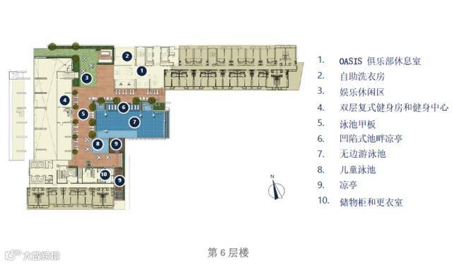 6楼:俱乐部休息室,无边际泳池