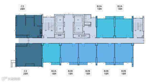 B栋-第44层楼平面图
