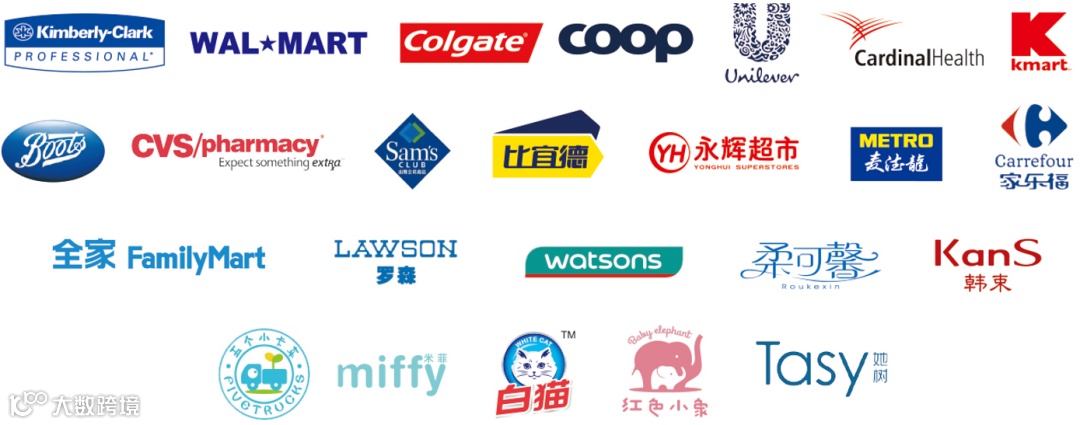 coop、沃尔玛、高洁露、比宜德、永辉超市、家乐福、全家、罗森、屈臣氏、柔可馨、韩束、白猫、红色小象等
