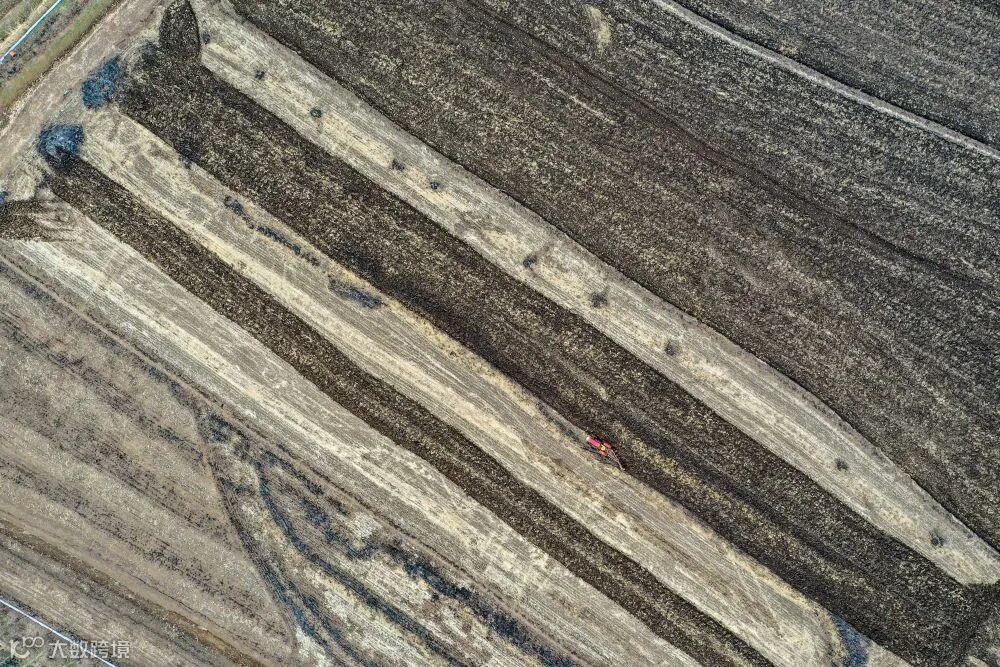 在吉林省吉林市昌邑区孤店子镇红卫村,春新生态家庭农场农民驾驶农机耕地(4月26日摄,无人机照片)。新华社记者 张楠 摄