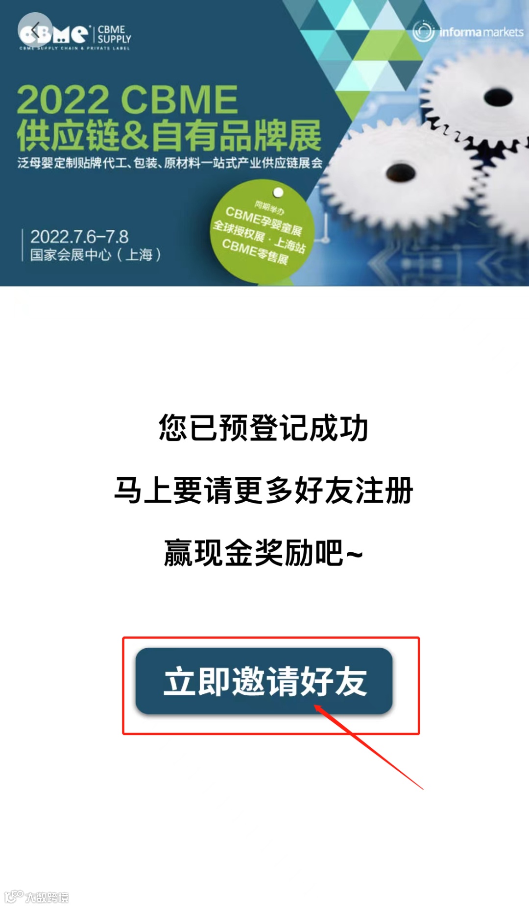 完成预登记后,点击“立即邀请好友”,邀请好友参与预登记。