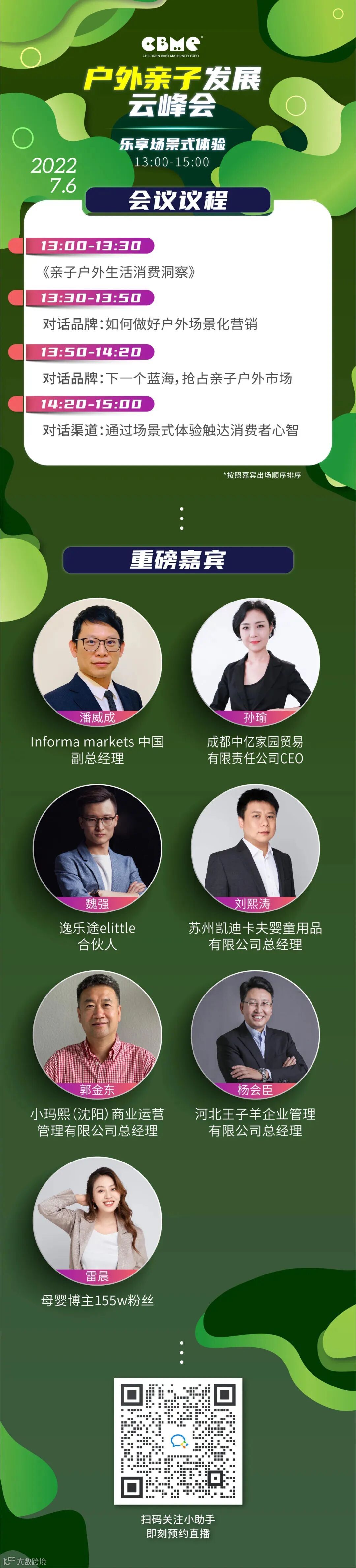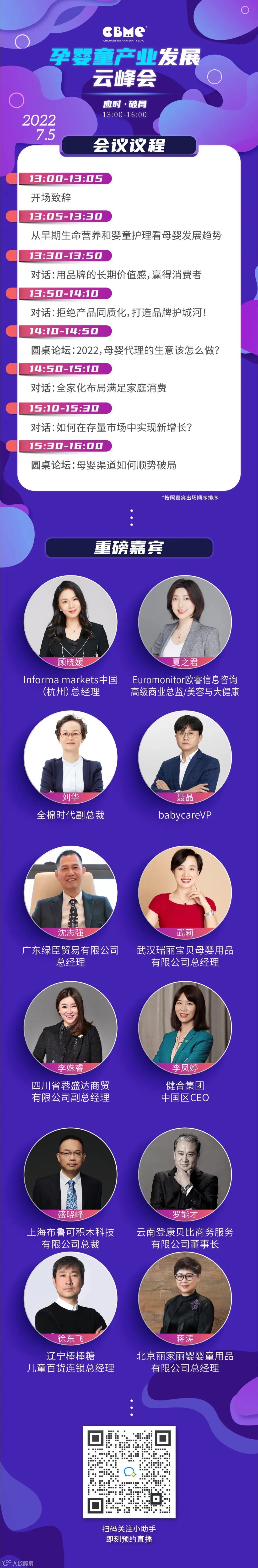 CBME作为孕婴童行业颇具影响力的展会之一,为了给所有孕婴童人建立一个发声、交流、学习的平台。在此特殊时期,特别推出孕婴童行业年度线上母婴盛会——CBME线上孕婴童展,同期举办CBME云峰会系列活动!7月5号,将举办云峰会系列活动的第一场重磅大会,CBME孕婴童产业发展云峰会。以「应时·破局」为主题,从经济发展、产业生态、赛道破局增长等维度出发,剖析现状,展望未来。