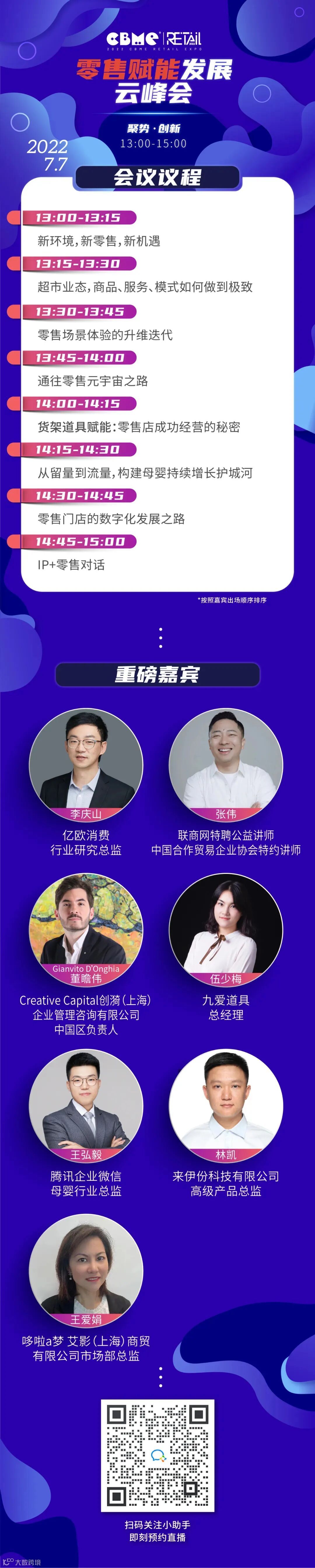 疫情常态化下,零售企业应当如何发展升级,走出困境?又将带来哪些坚守与转变?为更好推动双循环新发展格局下零售业的发展与创新,2022年7月7日,CBME零售展将联合CBME孕婴童展举办CBME RETAIL零售赋能发展云峰会,邀请行业各领袖精英,以「聚势·创新」为主题,从零售环境、零售运营、会员管理、营销方案、数字化转型等多角度剖析线下实体零售门店的现状,追踪最新市场动态,助力零售产业商贸对接,探讨破局之道。