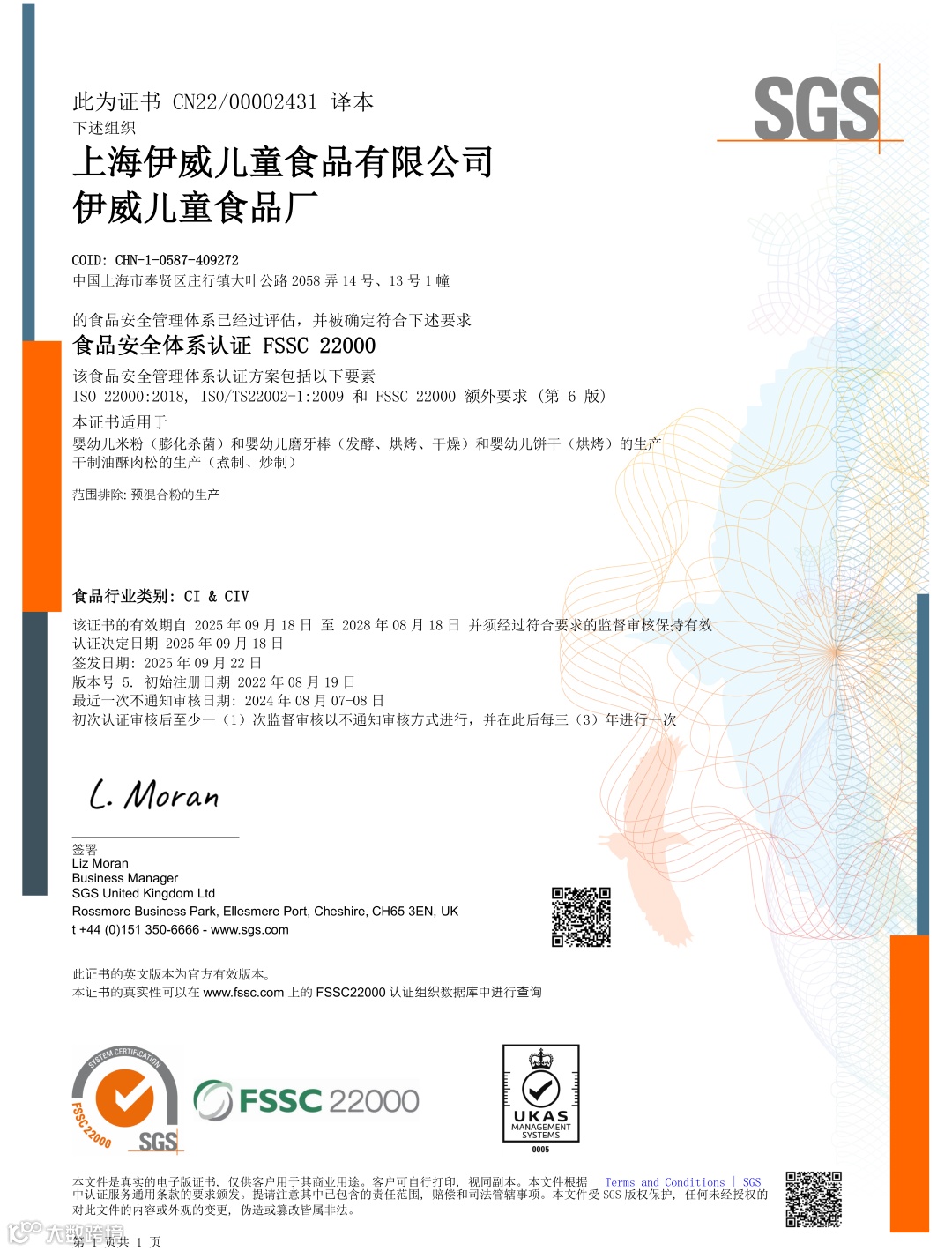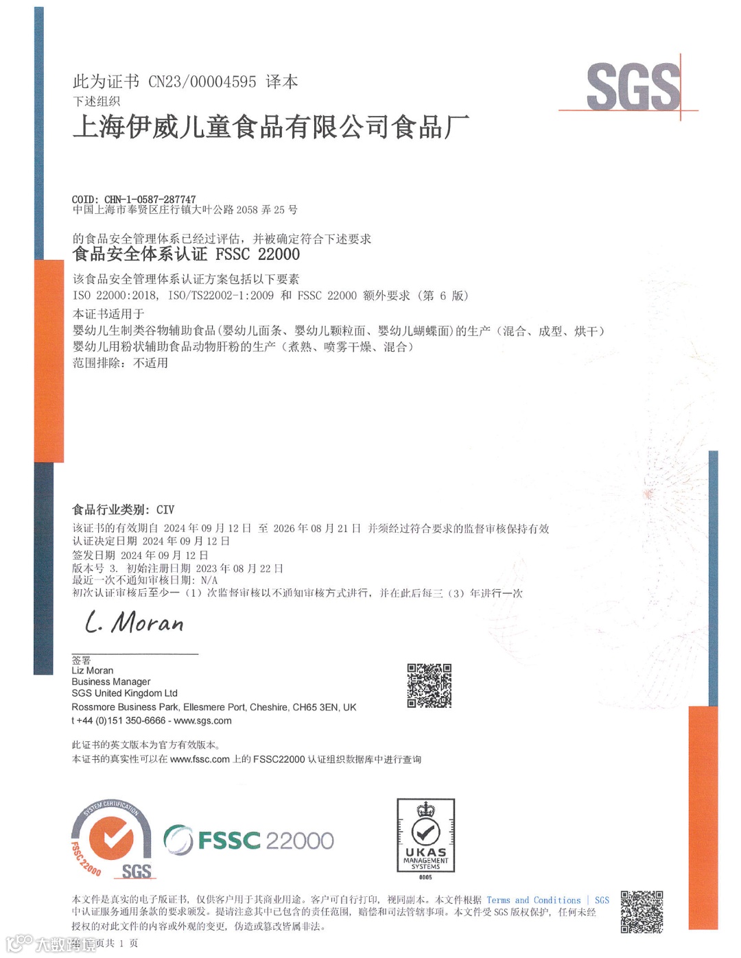 上海伊威儿童食品有限公司自1996年创立以来,29年深耕婴童营养领域,始终坚守“每一口 都是爱的高标准”这一核心经营理念,专注于婴童辅食与零食的研发、生产及销售全链条服务。