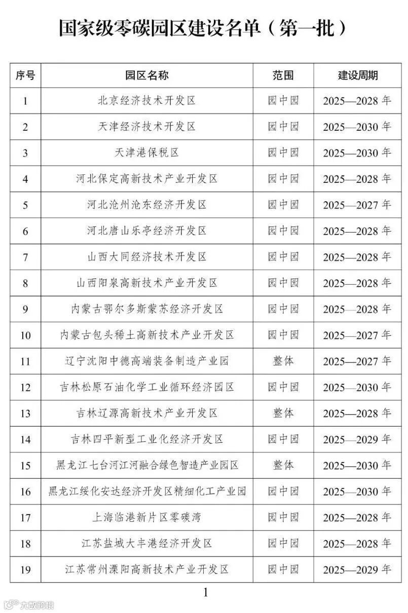 按照《国家发展改革委工业和信息化部国家能源局关于开展零碳园区建设的通知》(发改环资〔2025〕910号)要求,经园区申报、地方推荐、专家评审、部门会商等程序,确定了国家级零碳园区建设名单(第一批),共纳入52个园区。现予公布,并就有关事项通知如下: