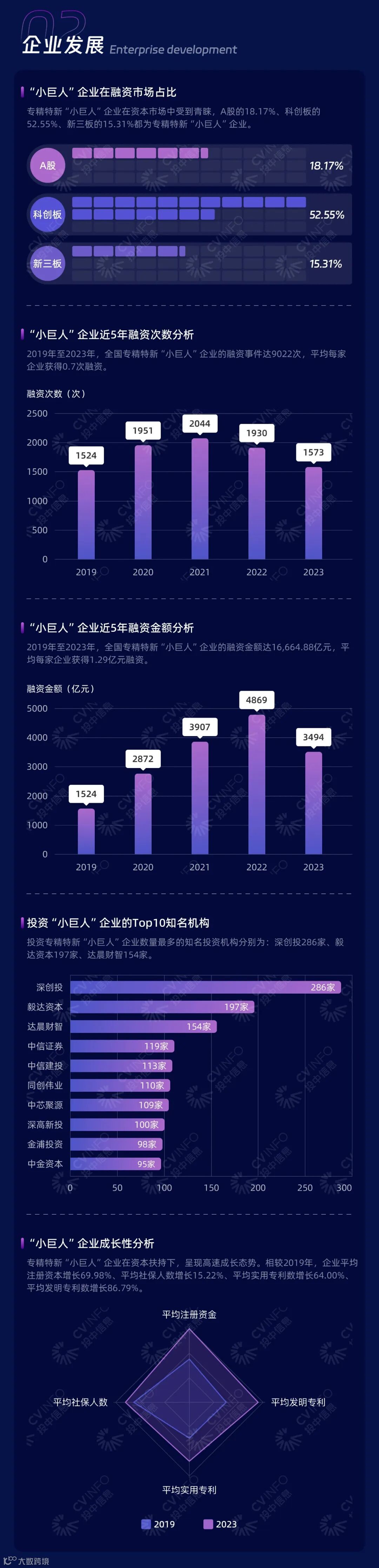 ♦ 专精特新“小巨人”企业受到资本重视,近5年平均每家企业获得1.29亿元融资;