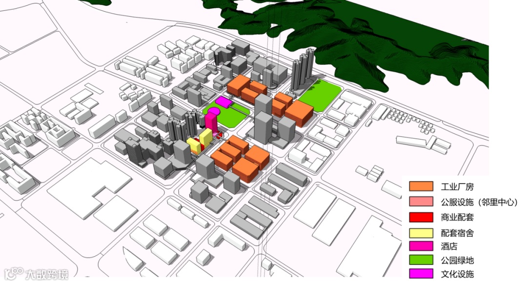 在用地性质上,是二三产业混合用地。40万平的建筑面积中,可建厂房341624平方米、宿舍29631平方米、酒店22454平方米、商业2330平方米、食堂2000平方米、公配设施2400平方米。该宗地突破了单一地块的局限,配置了产业、商业、宿舍、酒店,以及产业发展和生产生活所需要的公共服务设施,将研发生产功能和城市生活服务功能相协调,实现生产、生活、休闲一体化。