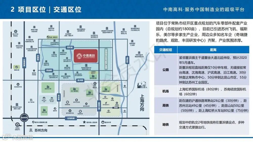 项目地处苏州常熟南北交通核心位置,是长三角一体化东进桥头堡。坐落于常熟经开区汽车零部件配套产业园内,是常熟市千亿级产业——汽车及零配件产业确定发展的专业功能区,所在区域未来发展潜力无限。